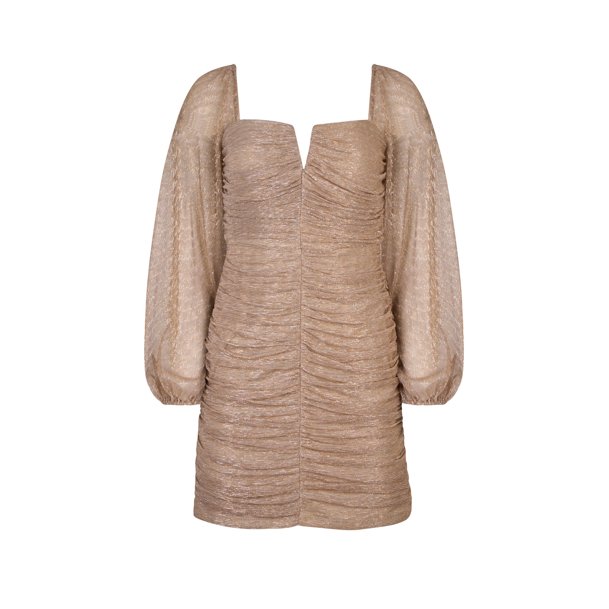 Ροζ χρυσό ντραπέ φόρεμα με μακριά μανίκια.