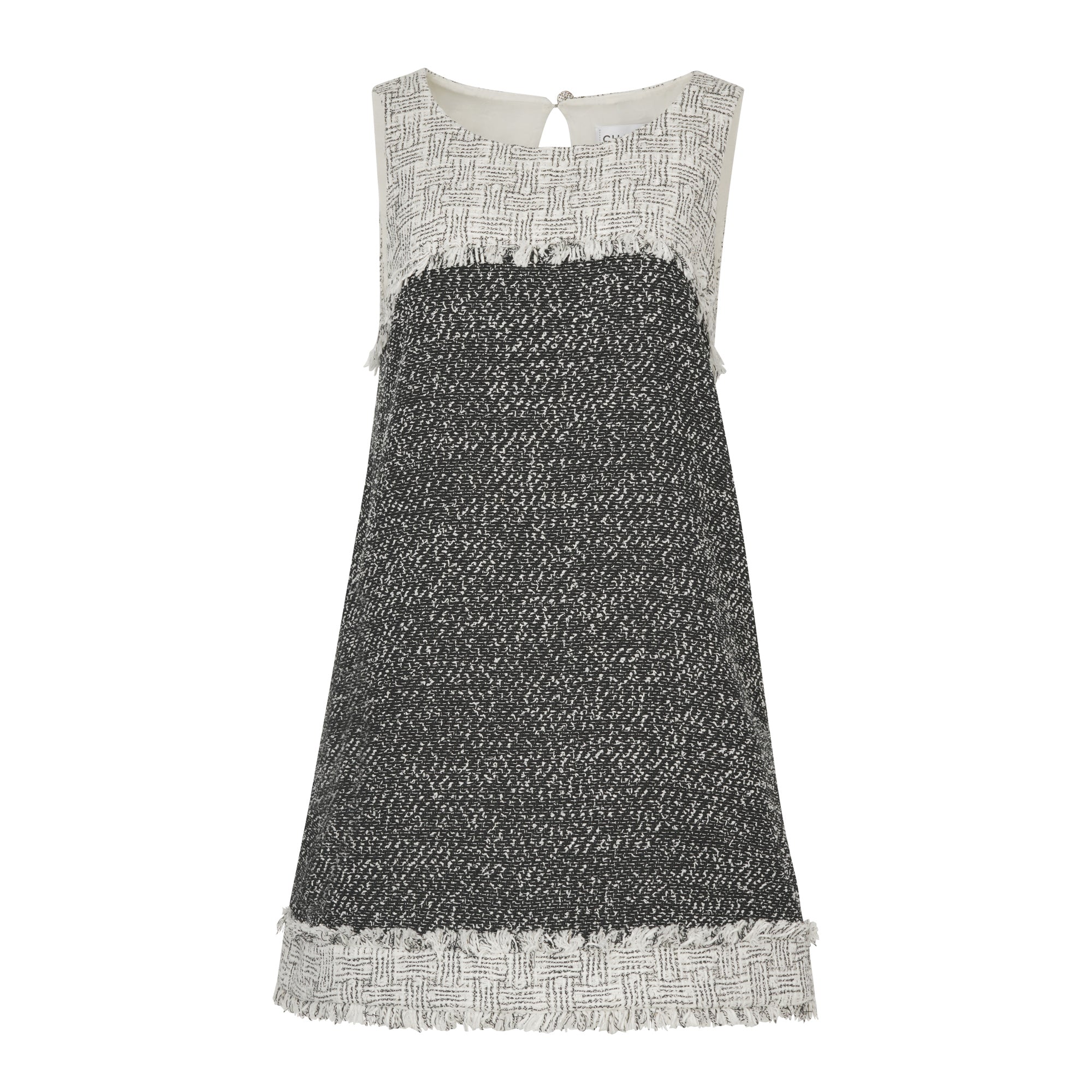 From spring 2014 collection by Karl Lagerfeld. Black and white. Raw edge trim. Sleeveless with scoop neck