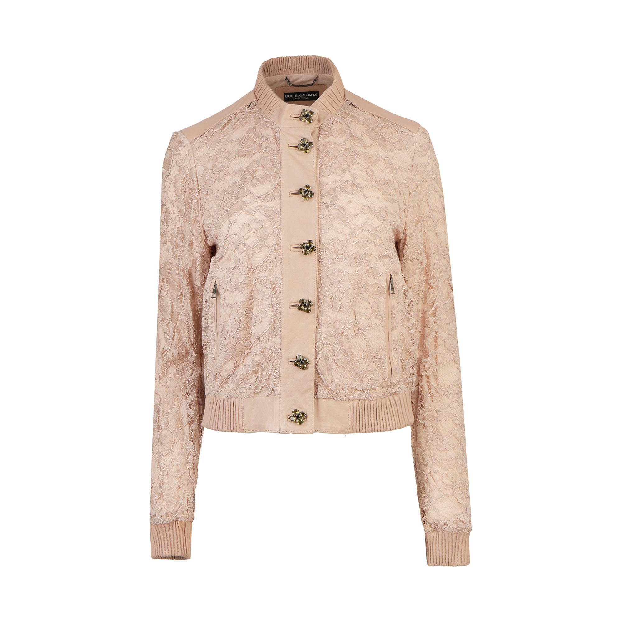 Dolce & Gabbana dusty pink leather Trim lace Blouson jacket
