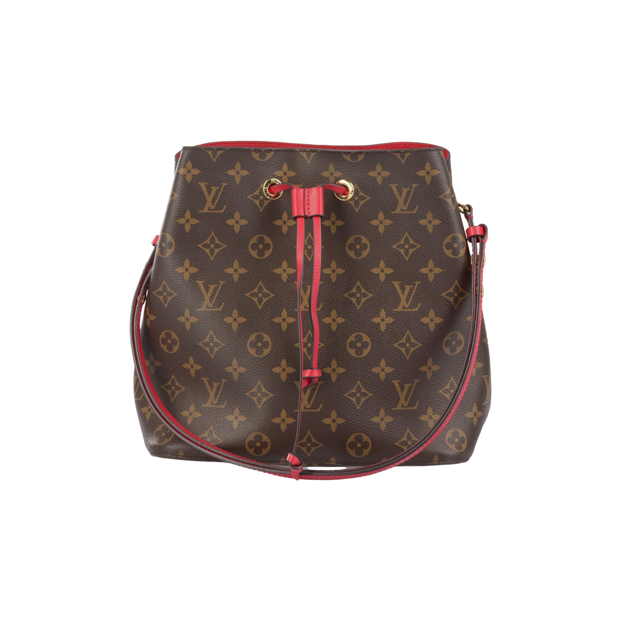This modern version in Monogram canvas features a sleek shape, colorful leather trim in red and matching bonded lining. The adjustable smart strap can be slung over the shoulder or lengthened for a trendy cross-body carry. Gold color hardware. It has 2 compartments