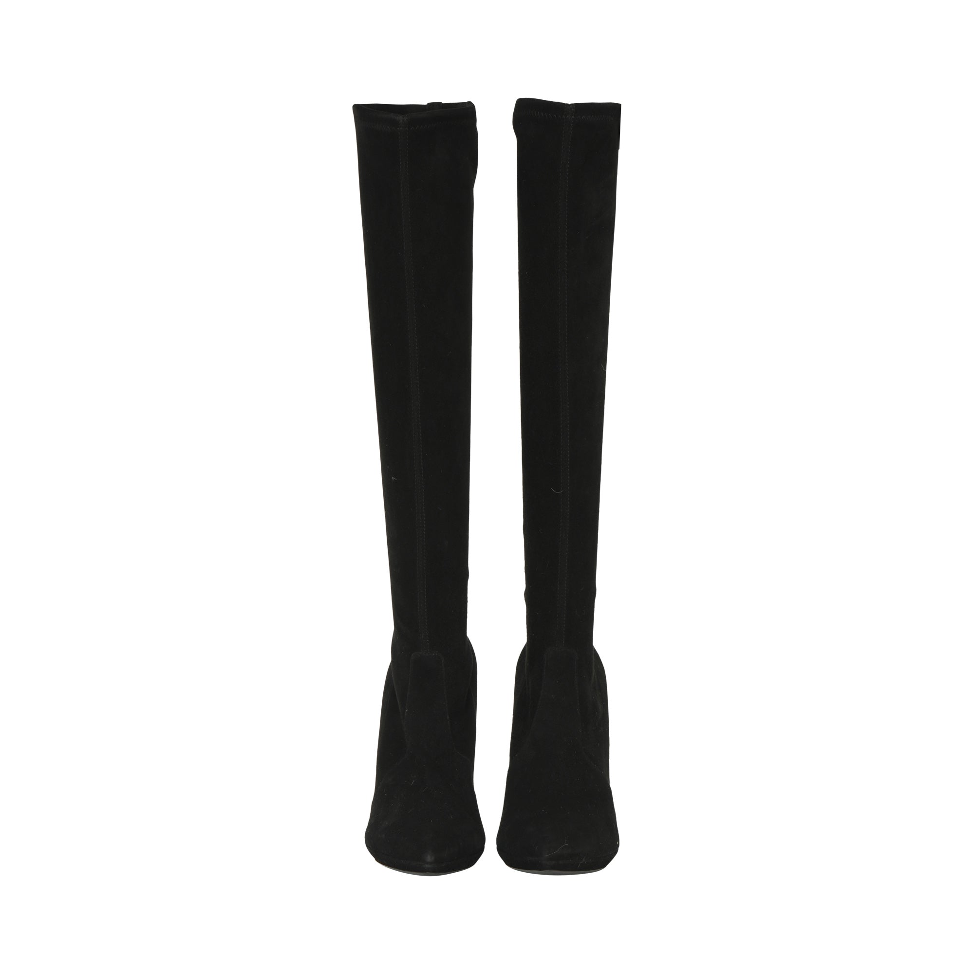 Knee length black suede boots. Slip Ons