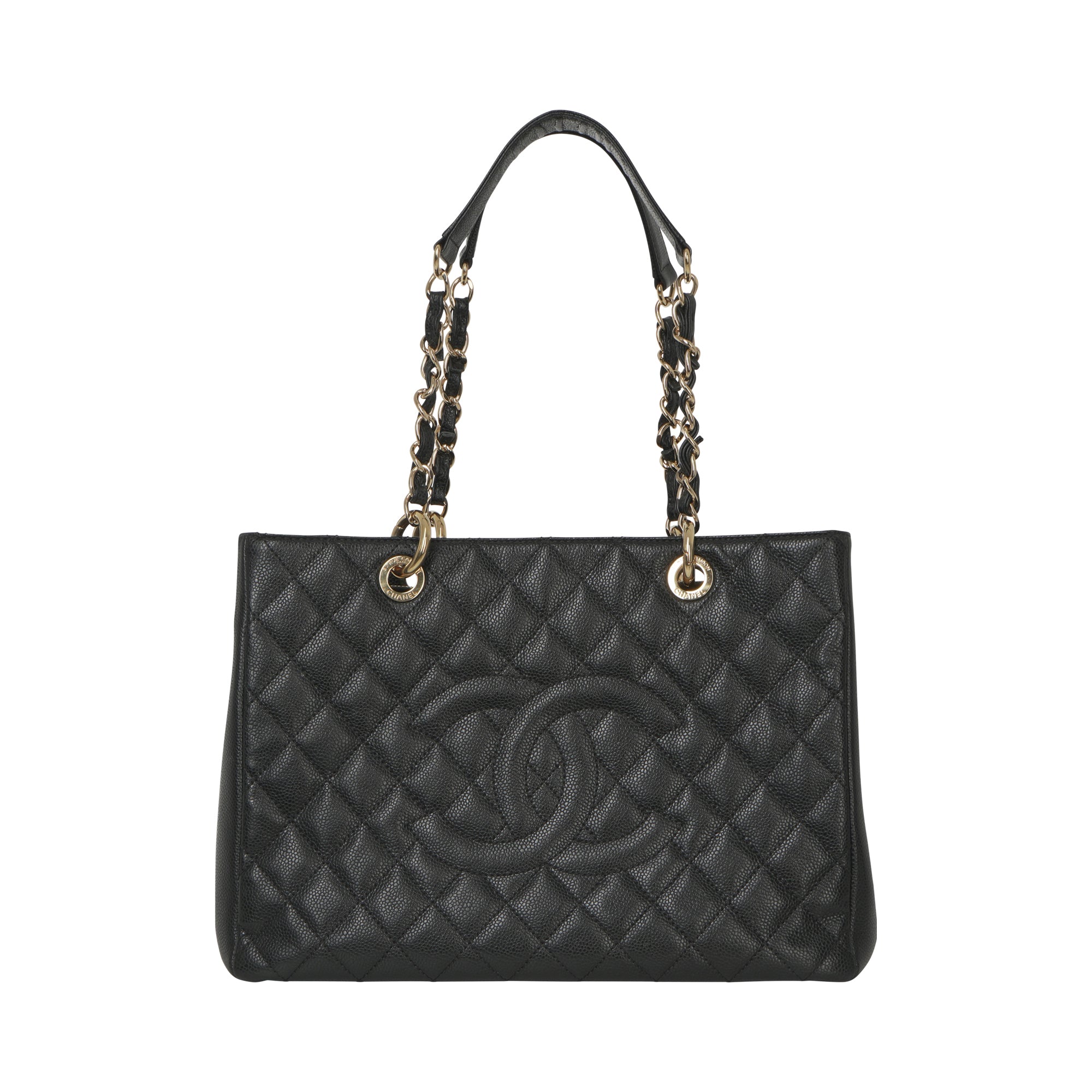 Chanel Shopping Tote bag in black caviar leather with gold-tone hardware.