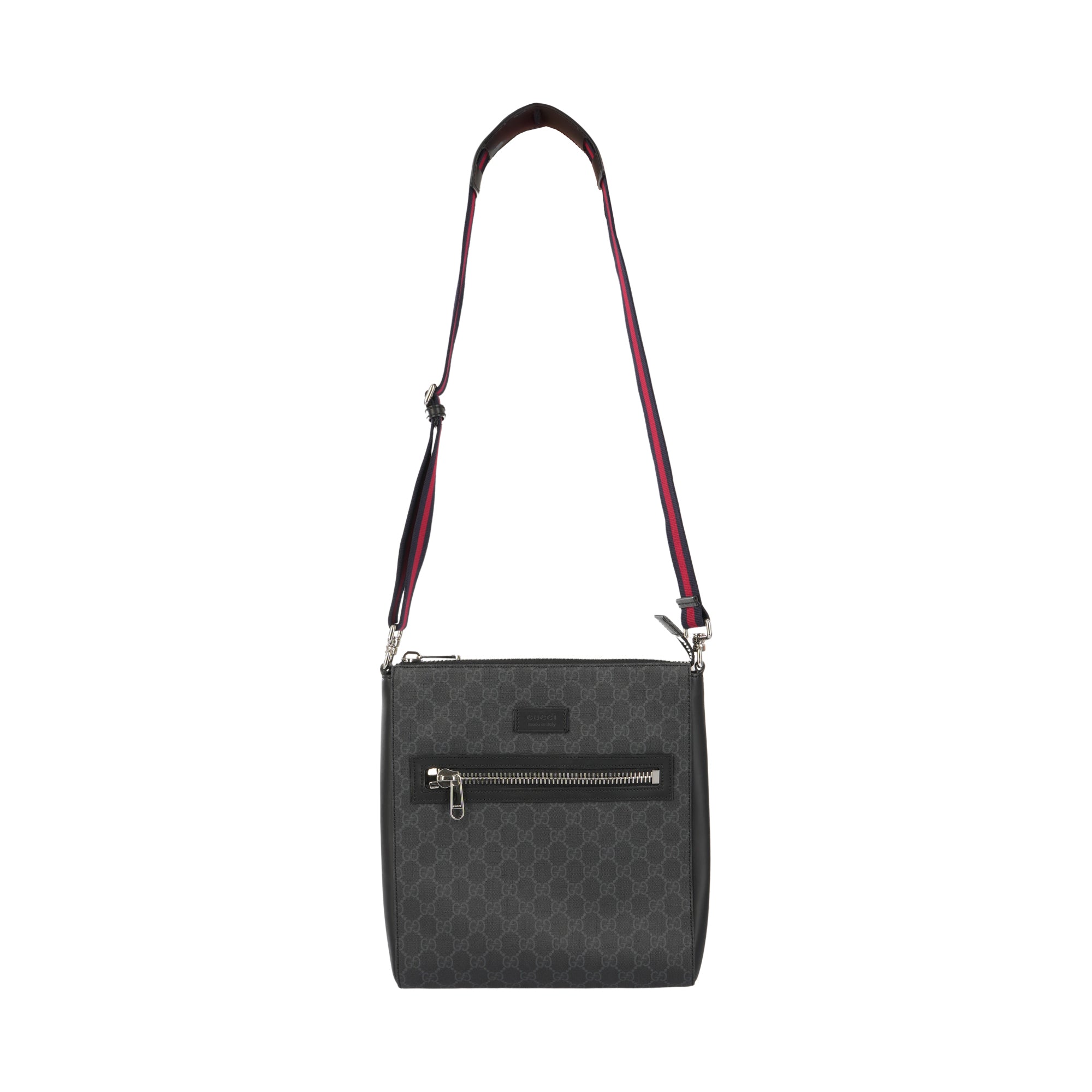 The signature GG Supreme canvas remains evergreen of the house thanks to its soft quality. Crafted from a coated microfiber fabric, here it appears in an all-black variation to define this messenger bag. A tonal leather trim completes the style, while a pop of color appears in the form of the archival web stripe. Front zip pocket. Canvas shoulder strap.