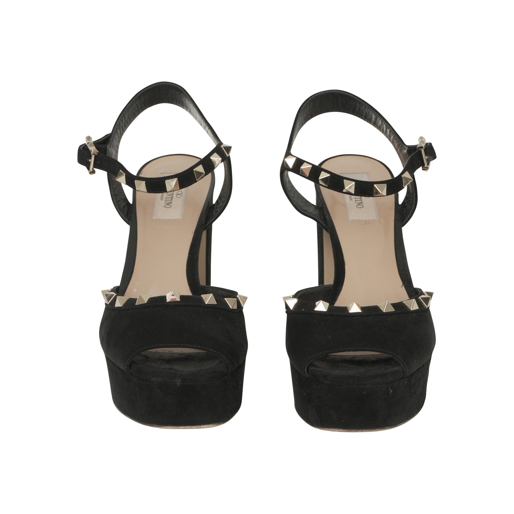 Valentino rockstud platform sandals in black suede with gold studs